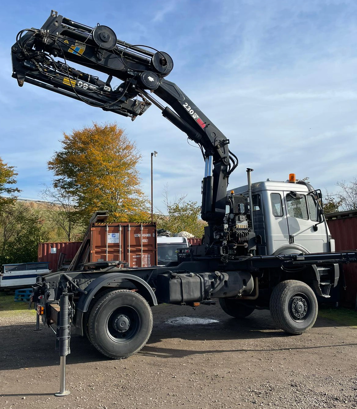 Tragfähigkeit des Krans sind 9.200kg, sodass auch schwere Güter eigenständig abgeladen / verladen werden können.
