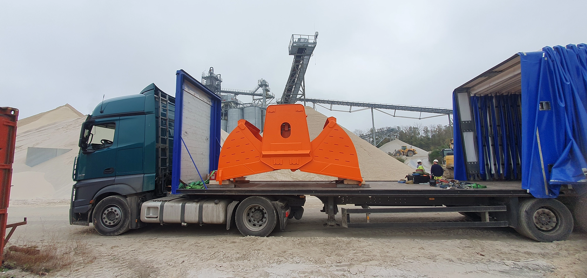 - Einen offenen Schwanenhals-Tieflader, speziell für Maschinen und Maschinenteile.
